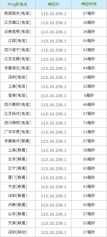 • (如图可见国内各省电信、联通、移动等线路到我司香港机房皆好)